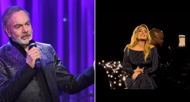 The band began to play the opening notes of “Hello Again.” Together, Adele and Neil sang — her soulful voice blending with his deep, time-worn tone. Every note carried decades of history, love, and resilience. When they transitioned into “Someone Like You,” Adele let Neil take the lead on the chorus. His voice was fragile yet powerful, and soon the crowd joined in, singing as one.