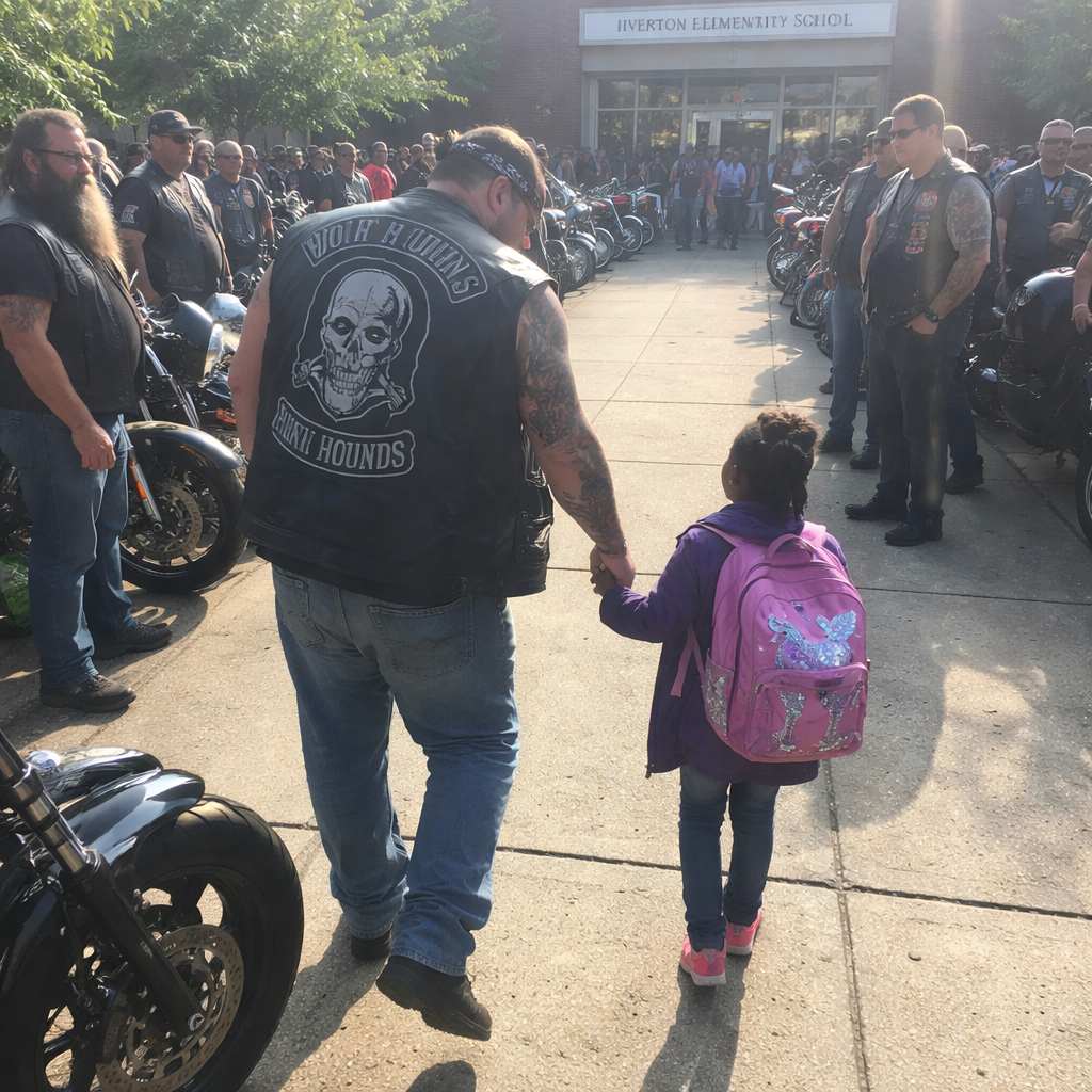 But it wasn’t just Bear. It was an entire sea of leather and chrome—two hundred bikers, all members of the Iron Hounds, had answered the call. Their motorcycles lined the street, engines growling, shaking the windows of the school. The bikers came in a line, one after another, blocking the street with their massive bikes. The schoolyard fell silent.