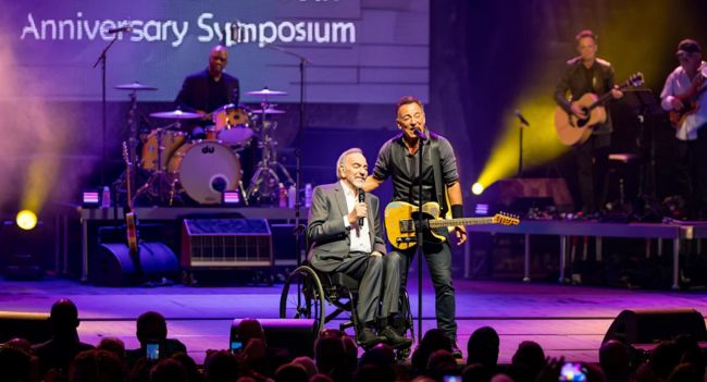 On September 6, 2025, Monmouth University’s 50th Anniversary Symposium for Born to Run became the setting for a truly unforgettable musical moment. Bruce Springsteen took the stage with the E Street Band, past and present members filling the arena with the iconic sounds that have defined his career. But the evening reached its peak when Springsteen invited Neil Diamond—seated in a wheelchair due to Parkinson’s disease—for a breathtaking duet of “Born to Run.”