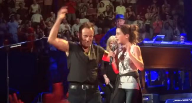 In the middle of the song, Springsteen spotted a girl in the crowd and, with his trademark warmth, invited her up on stage. Nervous but thrilled, she sang alongside him, her voice carrying with confidence and joy. The crowd erupted, swept up in the sincerity of the moment.