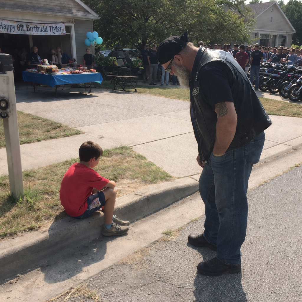 I could see the panic in their eyes. They thought we had come to target someone—maybe even attack. They saw fifty bikers surrounding a child’s party and assumed the worst. What they didn’t see were the empty folding chairs. They didn’t see the untouched presents. They didn’t see the little boy, alone and waiting. All they saw were the bikes and their fear.