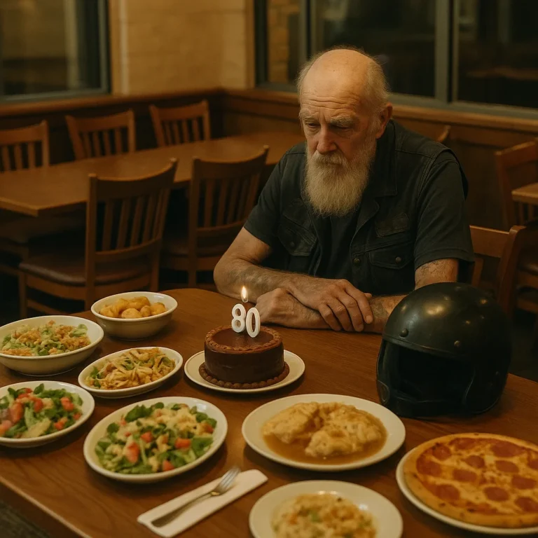 Not a single family member showed for my Biker Grandpa’s 80th birthday. Not even my father, his own son. I watched from across the street as Grandpa Jack sat alone at that long table, his weathered hands folded over the helmet he still carried everywhere, waiting for two hours while the waitstaff gave him pitying looks.