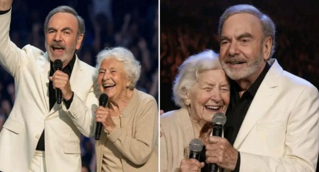 When the final note faded, the woman’s eyes filled with tears. Neil kissed her hand and whispered, “Thank you for singing with me. You made tonight special.” Then, turning to the audience, his voice thick with emotion, he said: