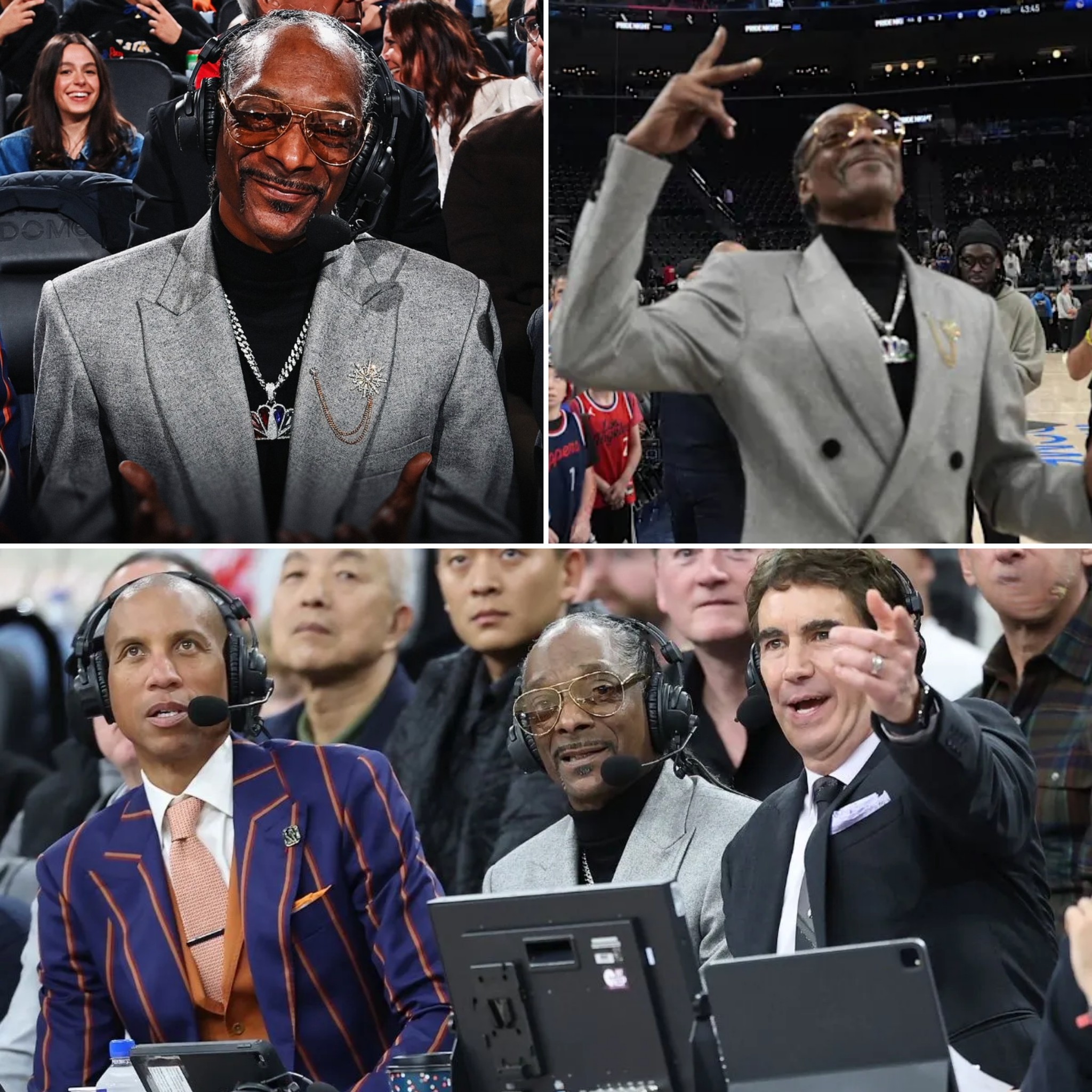 Snoop joined Peacock’s broadcast team for the matchup between the Golden State Warriors and the Los Angeles Clippers, instantly making his presence felt. His commentary blended sharp basketball insight with his signature humor, creating a broadcast moment that quickly went viral.