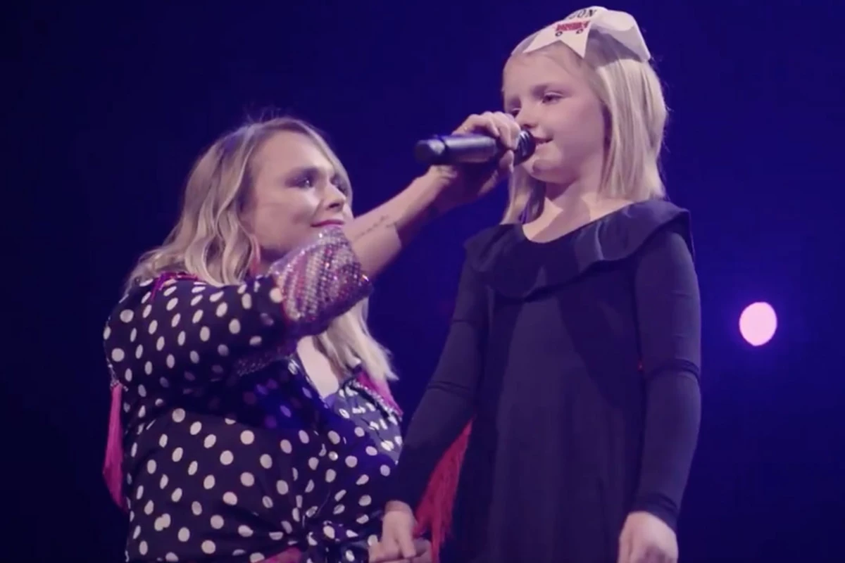 What followed was a duet that transcended entertainment. Miranda’s seasoned voice carried emotion; her daughter’s soft, steady harmony broke hearts in the stadium. At the edge of the stage, Blake Shelton, Miranda’s ex-husband and father of the child, sat visibly moved — tears glistening as he witnessed a moment that bridged past and present.