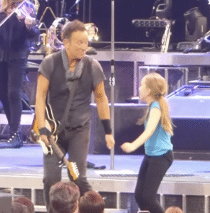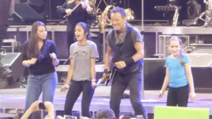 Bruce stepped closer to the edge of the stage and asked gently, “Who’s Grandma?” The oldest girl — no older than eleven — lifted a faded photo of a smiling young woman wearing a Springsteen T-shirt from 1975. “She loved you,” the girl shouted. “She saw you in New York and said you changed her life.” Bruce’s expression softened, and he motioned to security. “Bring them up here,” he said. The crowd erupted in applause as the three girls climbed onto the stage, nervous but beaming.