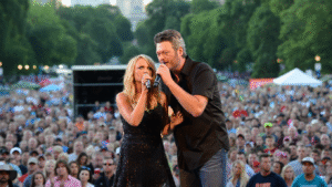 Blake Shelton and Miranda Lambert—two of country’s most beloved voices and once one of its most iconic couples—walked onto the stage together for the first time in nearly a decade. No introduction. No fanfare. Just silence, followed by the familiar opening chords of the song that once defined both their love and their heartbreak: “Over You.”