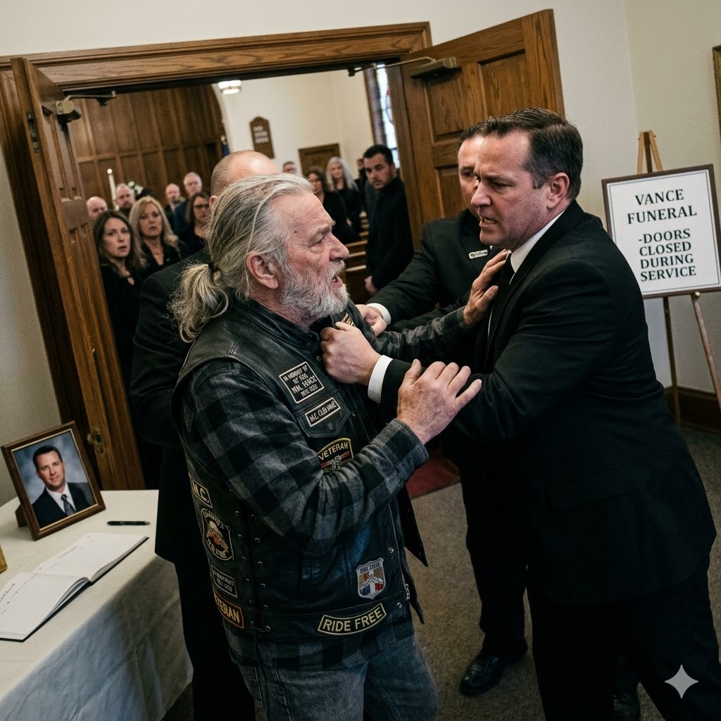 The funeral director grabbed my 73-year-old grandfather by his leather vest and tried to physically drag him out of the church, screaming that “biker trash” wasn’t welcome at a respectable service.