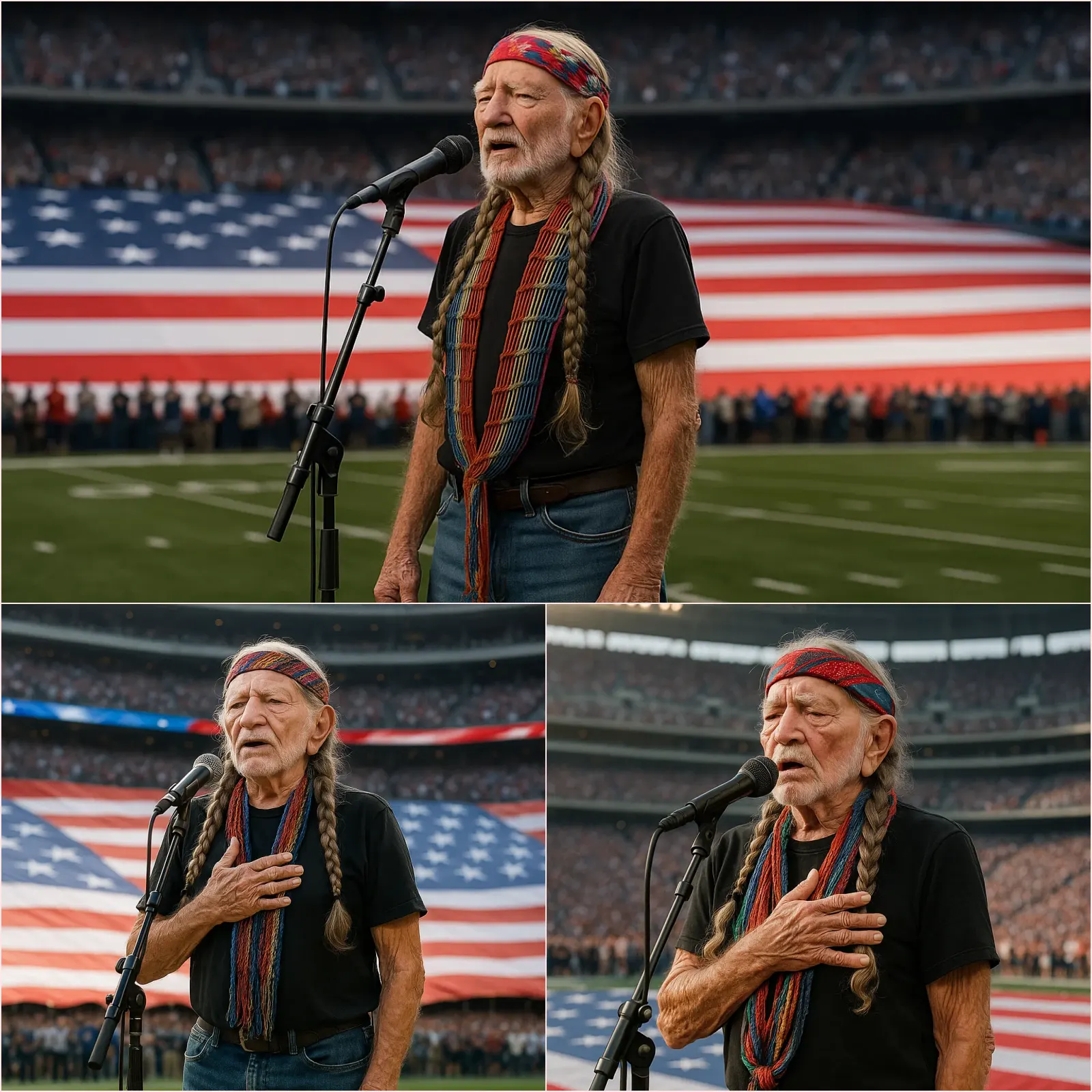 The stadium lights were bright, the roar still echoing from pregame announcements, and the crowd buzzing with anticipation. But the second Willie opened his mouth, everything changed.